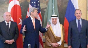 وصل الدفع الروسي نحو «الحل السياسي» إلى ذروته، أمس، مع الاجتماع الرباعي في فيينا، بمشاركة وزراء خارجية روسيا والولايات المتحدة والسعودية وتركيا، الذي عرض فيه الروس خطة الحل الذي يقترحونه مخرجًا للأزمة السورية المستمرة منذ أكثر من 4 سنوات.