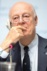 وعشية بدء المفاوضات السورية، قال دي ميستورا للصحافيين، بعد اجتماع للفريق المعني بوقف إطلاق النار: «هل أتوقع اختراقاً؟ لا، أنا لا أتوقع اختراقاً». لكنه أعرب عن الأمل في أن تؤدي هذه الجولة إلى «زخم» في محادثات الحل السياسي للنزاع المستمر منذ ست سنوات. ولفت دي ميستورا إلى أن «روسيا أعلنت للجميع اليوم أنها طلبت رسمياً من الحكومة السورية عدم شن ضربات جوية أثناء المحادثات». لكنه أضاف أن صياغة الدستور «امتياز خالص للشعب السوري ولم يحصل أن دولة سمحت لأخرى بصياغة دستورها»، في انتقاد كما يبدو لمسودة الدستور التي أعدتها موسكو وقدّمتها إلى الأطراف السورية خلال مفاوضات آستانة الأخيرة.