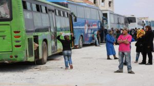 وأفادت وكالة “سانا” التابعة للنظام ببدء دخول الحافلات إلى بلدتي كفريا والفوعة في ريف إدلب شمال غربي سورية، لإخراج مسلحين في مليشيات طائفية ومدنيين سوريين شيعة بموجب الاتفاق المبرم بين قوات النظام ومسلحي جبهة النصرة في الجيب الشمالي من مخيم اليرموك جنوب دمشق.